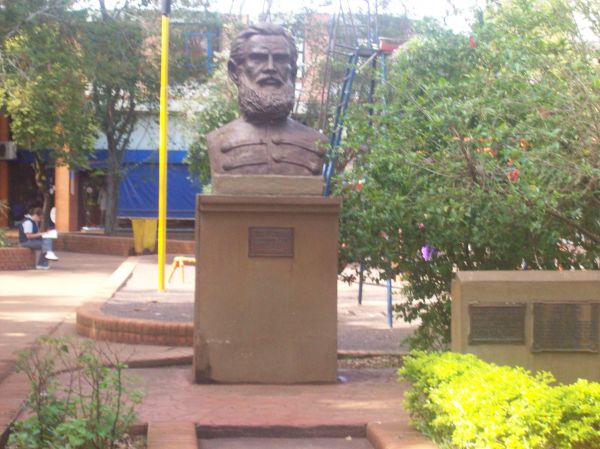 esta plaza es la mas importante de Eldorado ya que alli se reunen los chicos y chicas los sabados dias de mucha actividad nocturna ,hay bares ,pub y discos ,ahora esta totalmente renovada a nueva con mas comodidades para la gente , eldorado crece con su gente ..es busto de la foto es del gral guemes..